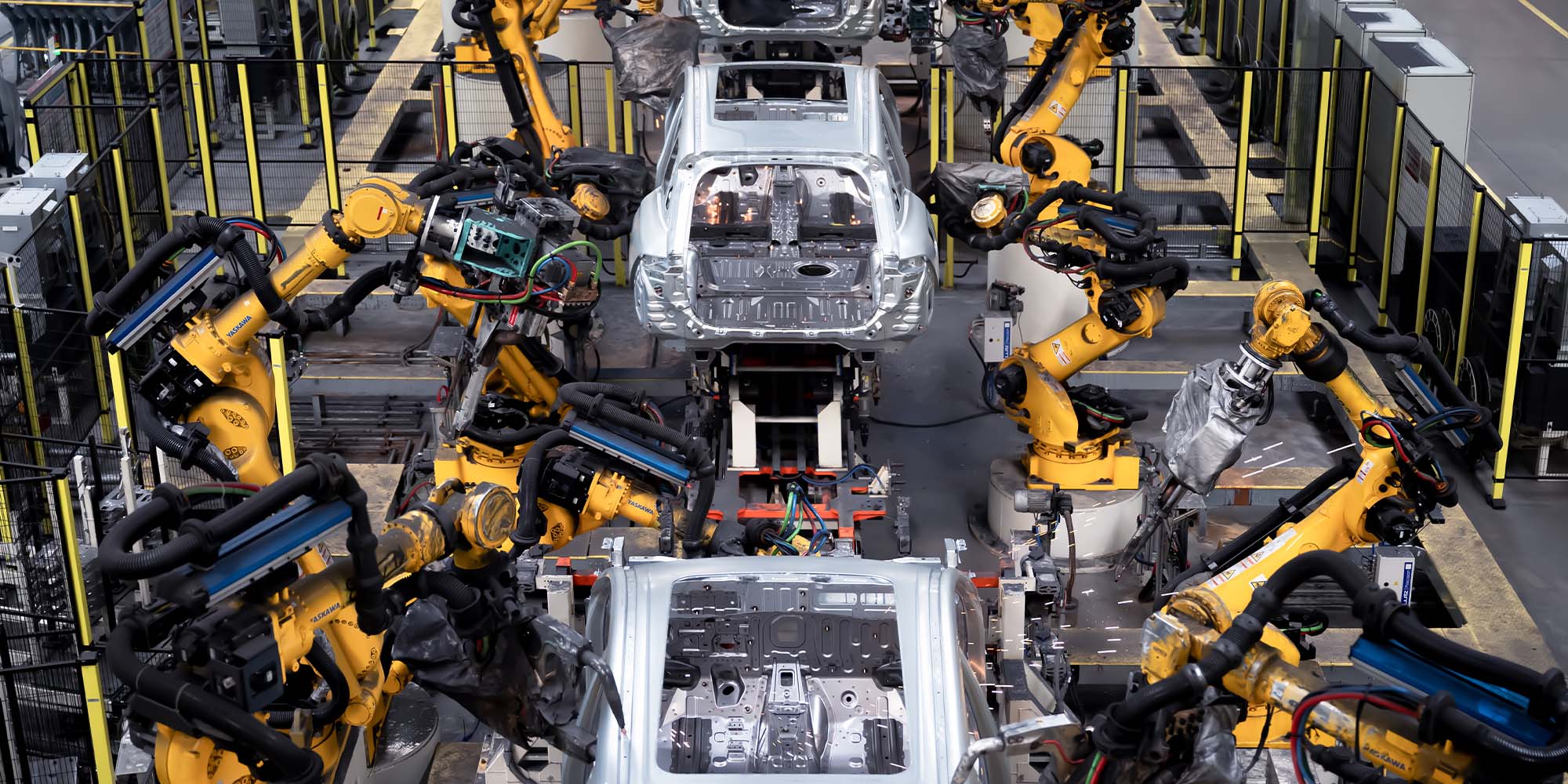 В сварочном цехе работают многочисленные роботы, которые отвечают высоким стандартам сборки кроссовера TIGGO 9. Особая технология на базе искусственного интеллекта позволяет им отслеживать точность каждого сварного шва, что обеспечивает герметичность и долговечность кузова кроссовера и гарантирует безопасность водителя и пассажиров
